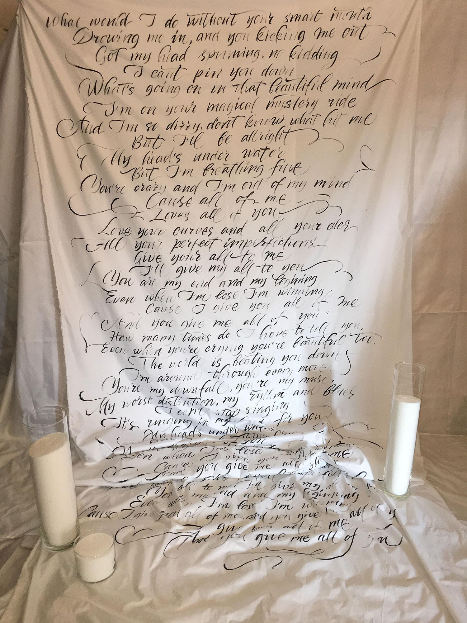 Фотозона-ширма, аренда Киев, калиграфия песни, ручная работа, фотозона для молодожен